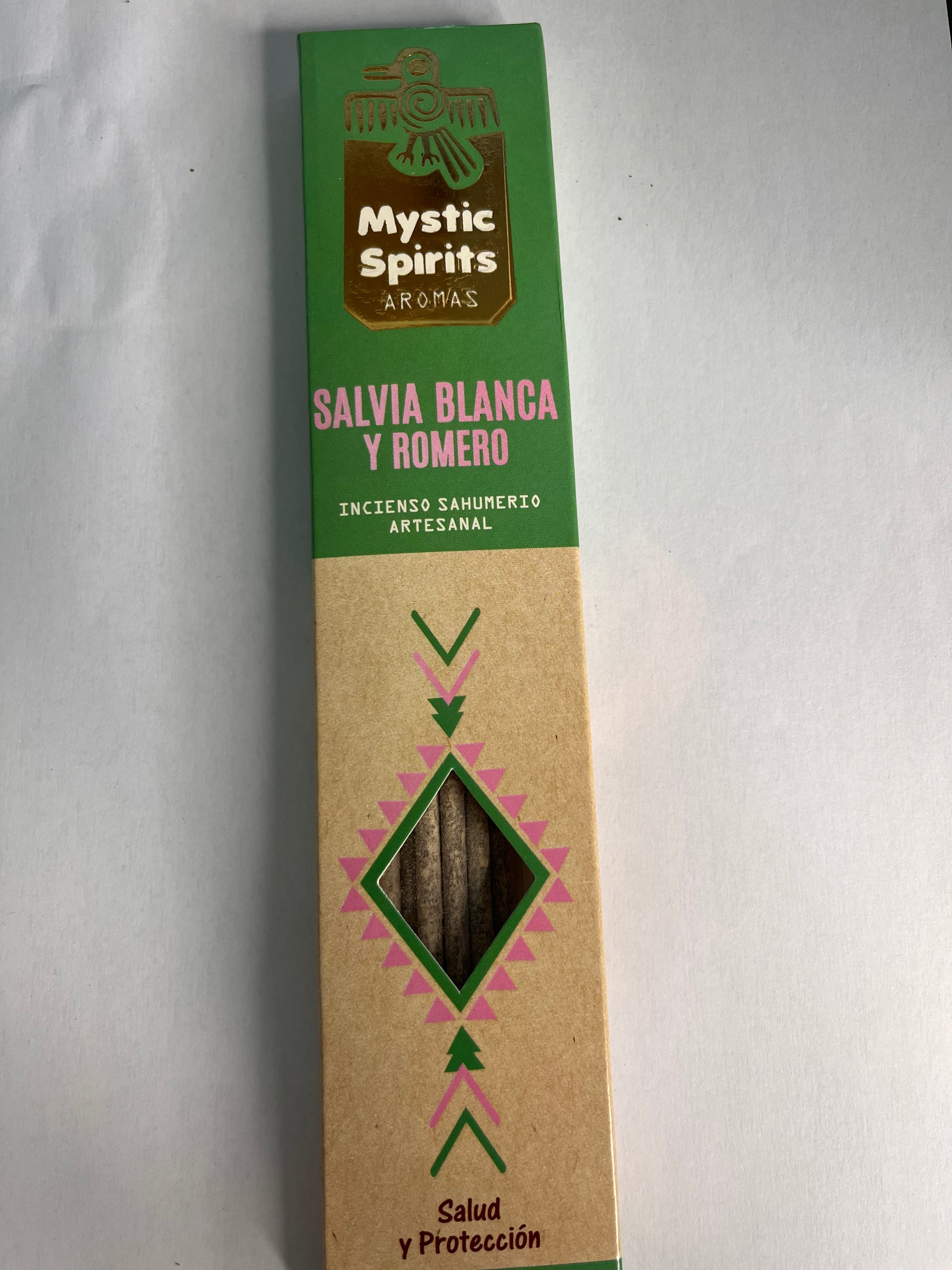Incienso aromático elaborado con salvia blanca y romero, dos plantas sagradas reconocidas por sus propiedades purificadoras. Ideal para rituales de protección y limpieza energética, este incienso activa vibraciones positivas mientras disipa energías negativas del espacio. Su aroma envolvente crea un ambiente sereno y equilibrado, perfecto para bendecir personas y lugares. Al quemar, libera fragancias naturales que generan una atmósfera de paz y bienestar duradero. Esencial para prácticas de meditación, sanación y protección espiritual.